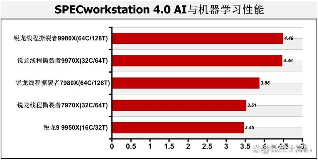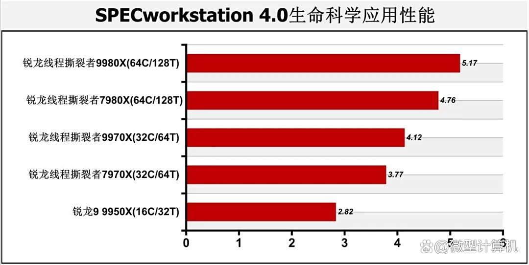 不难看出锐龙线程撕裂者9980X、锐龙线程撕裂者9970X显然更适合在工作站领域应用,首先不少工作站领域的应用测试都能调动远超64条CPU线程参与运算,再加上Zen 5架构优势,可以充分发挥出锐龙线程撕裂者9980X的64核心、128条计算线程的性能。而锐龙线程撕裂者9970X则适用于预算有限,但希望获得更高性能的用户,借助Zen 5架构,它的性能不仅远超锐龙线程撕裂者7970X,更在AI与机器学习测试中超过了64核心的锐龙线程撕裂者7980X,在生命科学应用性能、媒体与娱乐行业应用性能与产品设计性能测试中的成绩也非常接近锐龙线程撕裂者7980X。而锐龙9 9950X的处理器单线程性能虽然有优势,但由于核心数量差距太大,而专业工作站应用软件大多需要强大的多核心算力,所以锐龙9 9950X的测试成绩与这些处理器相比有较大的差距,是无法替代它们的。