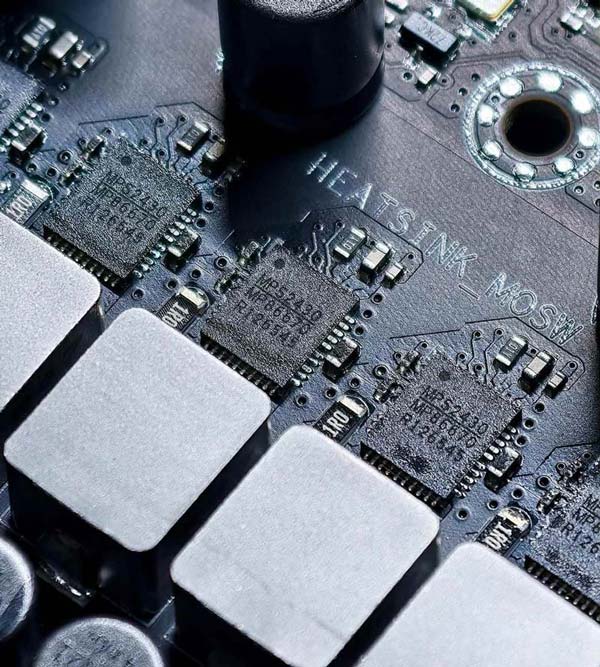 主板采用DrMOS MP86670,由MPS出品,具备80A高电流输出能力,顶部丝印的MPS2430为工厂内部批次码,非产品型号,常见于供电核心区域的高阶DrMOS。