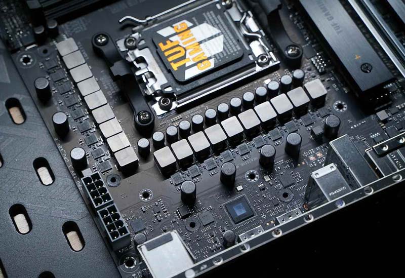 在供电方面,TUF GAMING X870-PLUS WIFI 配备了 16+2+1 相供电模组设计,核心部分采用80A DrMOS MOSFET,提供强劲而稳定的电力输出,足以应对 Ryzen 9 9950X3D 等旗舰级处理器的重载需求。配合双8Pin ProCool 高强度供电接口与大型高效散热鳍片,有效降低 VRM 区域温度,即使在高频超频或长时间满载运行下,也能保障系统稳定不掉链,真正做到“性能释放无后顾之忧。