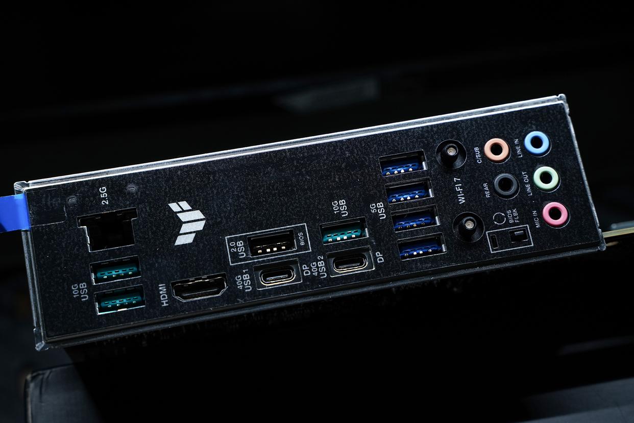 主板采用预装式一体化 I/O 挡板,接口齐全。配备2.5G网口、HDMI、USB 5Gbps 与 10Gbps接口、音频输出,并提供 2个40Gbps USB4高速接口。支持 BIOS FlashBack,一键更新固件;WiFi 7接口为易拆式天线设计,方便布线,连接更稳定。
