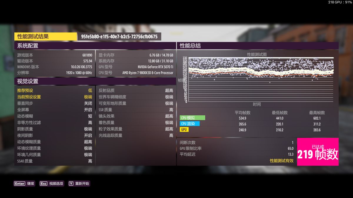 在《地平线5》1080p极端画质实测中,R7 9800X3D达成帧数为219帧,略高于R9 9950X3D的217帧,显示出在特定渲染场景下,R7可能拥有更高的短时爆发力或更激进的调度策略。