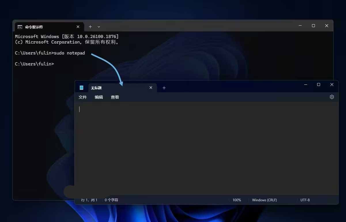 在 Windows 11 24H2 中,我们可以通过启用 sudo 命令,像在 Linux 中那样临时提升命令和应用程序权限,例如以管理员权限打开「记事本」:仅适用于 Windows 11 24H2 及更高版本。