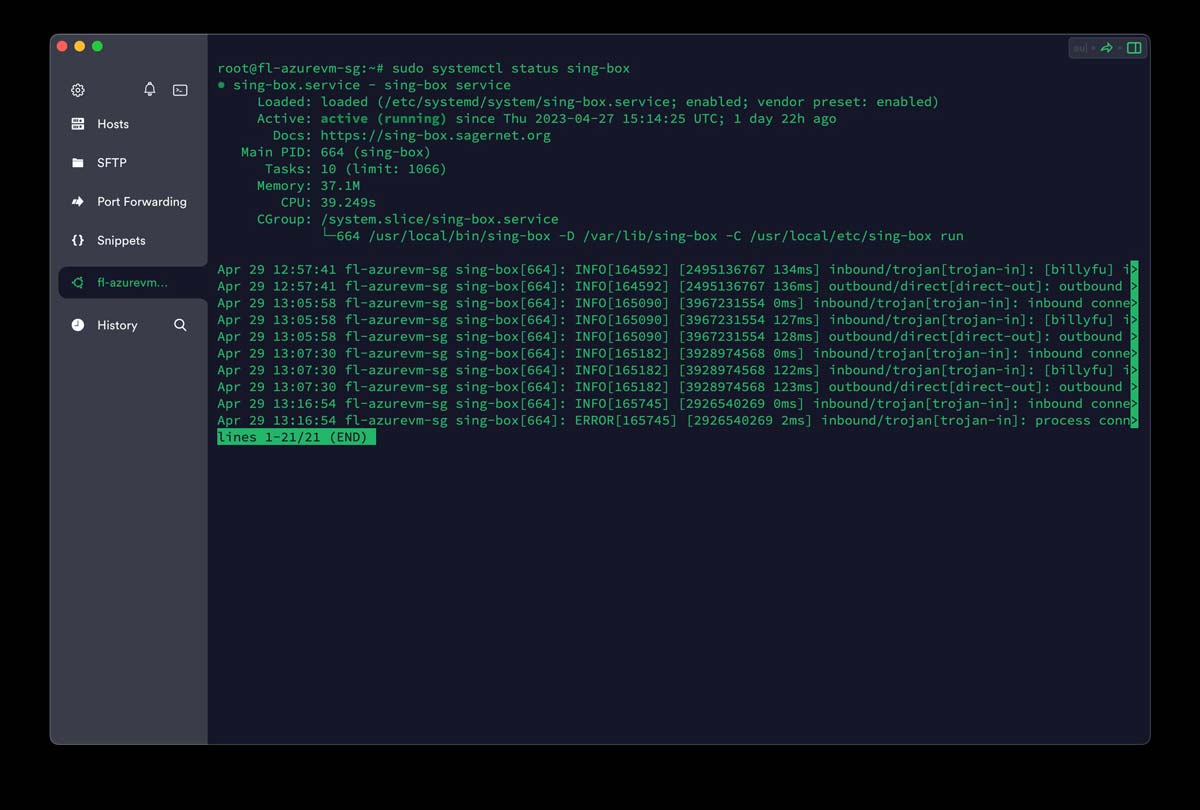 这将显示服务的描述、加载状态、活动状态、子状态、进程 ID (PID)、内存使用、CPU 使用情况和最近的服务日志等信息。
