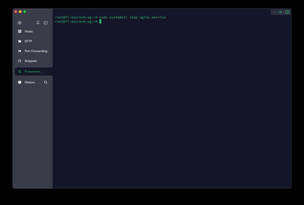 这将在后台停止服务并返回提示符。您可以使用 status 子命令验证服务是否已停止。