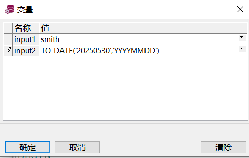 - 如果赋值的变量是DATE类型,那么在弹出的小窗口上传值的时候,要用 TO_DATE 这个函数转换数据类型
