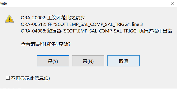 RAISE_APPLICATION_ERROR(-20002, '工资不能比之前少');