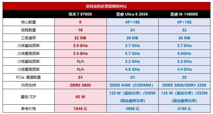 性能级游戏装机选锐龙7 9700X还是酷睿i9/Ultra 9处理器
