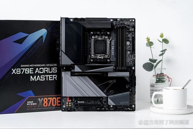 我们为全新的AMD锐龙7 9800X3D处理器准备的座驾是技嘉(GIGABYTE)超级雕X870E AORUS MASTER主板。它是技嘉推出的高端主板产品,主要面向追求极致性能的电脑发烧友、超频爱好者以及需要高性能工作站的专业用户。它采用了16+ 2+ 2合计20相供电设计,内存超频可以支持到8600+MHz,支持AMD EXPO快速超频技术。共配备了3个PCIe 5.0×4的M.2固态硬盘位,以及1个PCIe 4.0×4 M.2盘位。3条PCIe插槽中,首条插槽支持PCIe 5.0*16标准,并且配备了PCIe EZ-Latch Plus快拆结构,显卡安装拆卸都非常方便。主板核心发热区域全部被散热装甲覆盖,斜线纹理从视觉上将主板划分为三个区域,各个区域相对独立又协调一致,整体观感也是相当不错。