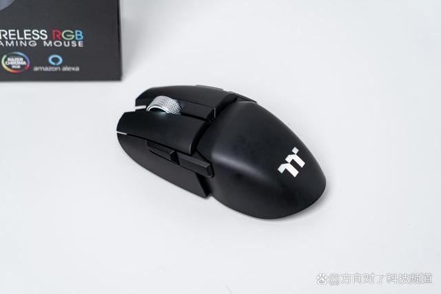 鼠标这边我们选择的是TT(Thermaltake)幻银ARGENT M5 WIRELESS RGB。这款鼠标拥有有线和无线两个版本,我们手中的无线版尽管考虑到续航等因素,去除了骚气的RGB底灯,但仍然个性十足。金属滚轮+拉风RGB灯效的设计,让它的辨识度直接拉满。它支持三模无线方案,搭载PMW-3335光学传感器,蓝牙无线续航200小时,2.4G无线开灯续航36小时,关灯100小时。鼠标采用左右手对称设计,左右侧各两颗按键,整体尺寸不算大,重量较轻。此外,它的性能也十分出色,16000DPI,400IPS,40G加速度,欧姆龙微动寿命超五千万次,非常适合用来打游戏。