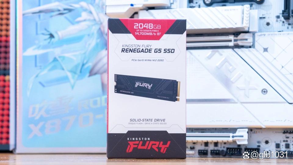 SSD方面选择了金士顿最近推出的FURY Renegade G5 PCIe 5.0 SSD产品,属于金士顿的FURY系列。我的是2TB容量版本,最高读取可达14700MB/s。也是目前市面上旗舰之选了,包装盒很小巧。正面可以看到产品容量与外观渲染图。