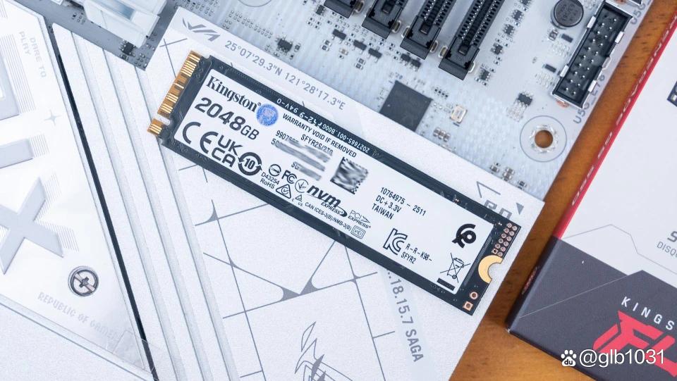 主控是来自慧荣SM2508的主控,这也是目前PCIe 5.0 固态硬盘的主流选择。2TB版本采用金士顿自家的NAND颗粒,2TB版本为两颗NAND颗粒设计,单颗容量1TB。SSD产品背面是容量信息以及各种认证信息。