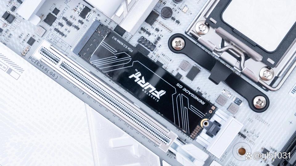 安装效果如图,搭配主板自带的散热片日常运行温度表现要比早期的PCIe 5.0 SSD好很多。