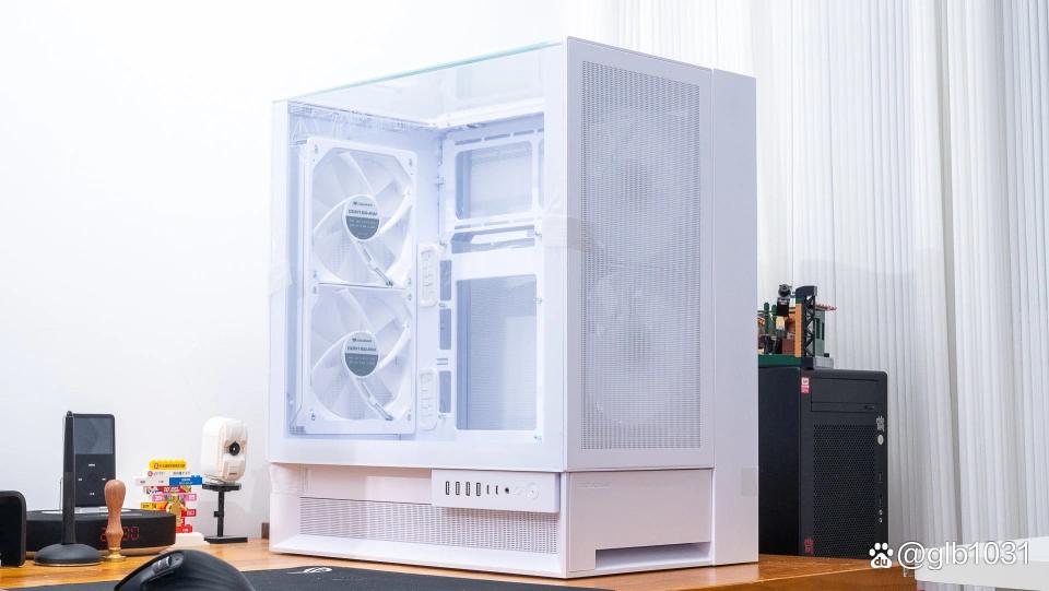 这款机箱可以根据玩家喜好放在桌面左右两侧,而且不论放在哪一侧都可以让侧头一面冲着玩家。