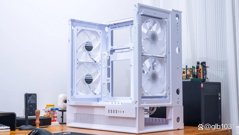 作为一款主板以及显卡IO都向下的机箱产品,它确实有很多巧思。毕竟ATX机箱每次插拔IO都把机箱放倒并不现实,所以它把机箱底部高度上提。而且各侧都采用磁吸面板,为底部IO接口的插拔提供了一定的便利性。