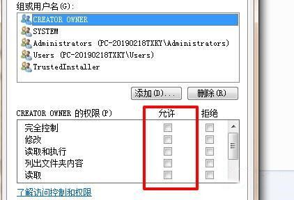 3、在组或用户名中勾选“CREATOR OWNER” 按下回车确定。
