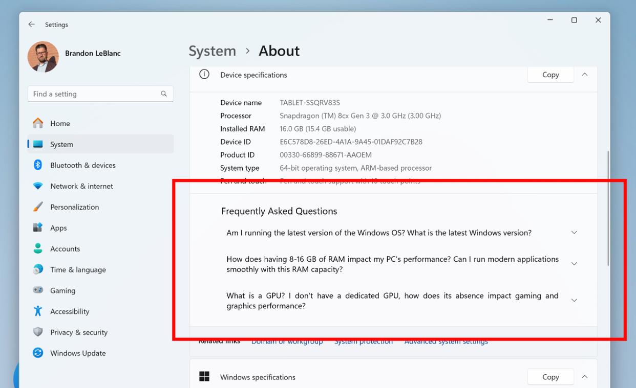在“设置 > 系统 > 关于”页面新增“常见问题解答内容”,更方便用户查看系统配置、兼容性等信息。