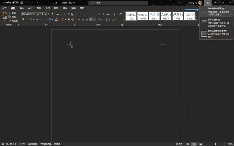 在 Microsoft Office 的 Word、PowerPoint、Excel、Outlook 和 Visio 中,点击「功能区的显示选项」按钮并选择「自动隐藏功能区」,可以隐藏所有工具栏和标签,为你营造一个无干扰的工作环境。选择「显示选项卡和命令」即可恢复。