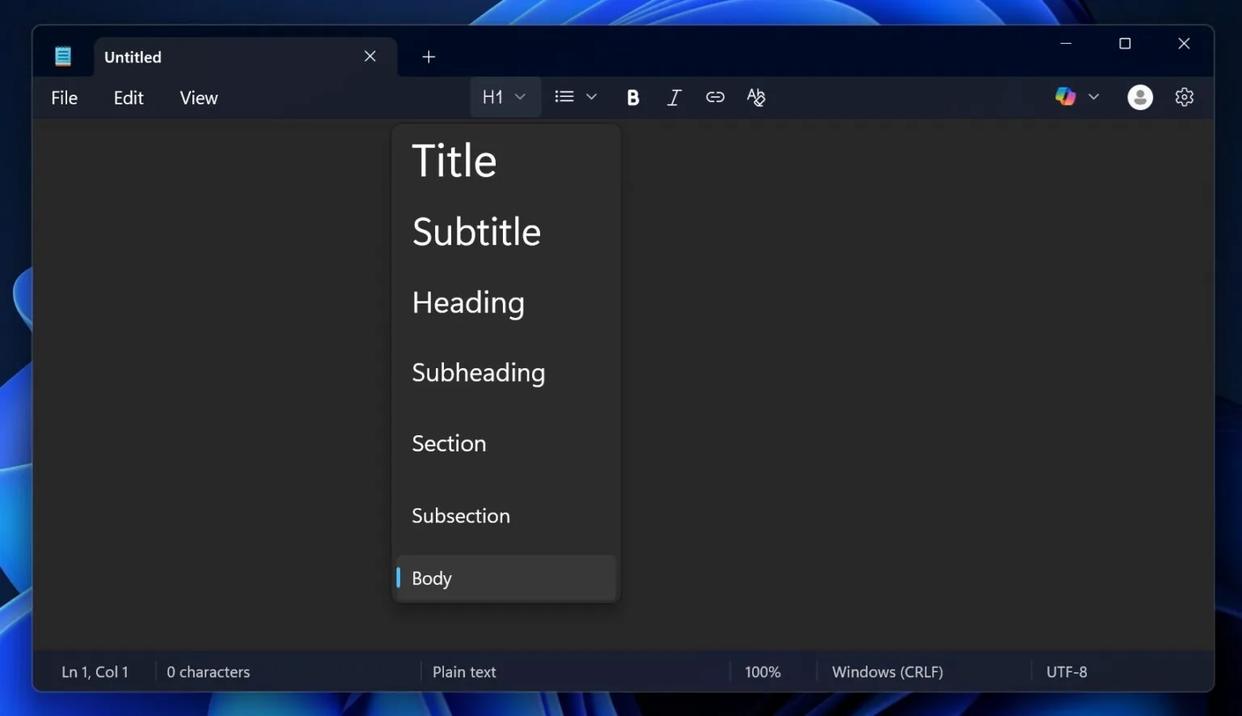 今年 5 月 30 日,微软宣布推出最新的记事本(版本 11.2504.50.0),引入轻量级格式功能,但仅面向 Canary 和 Dev 用户提供。