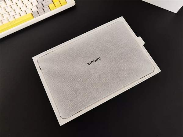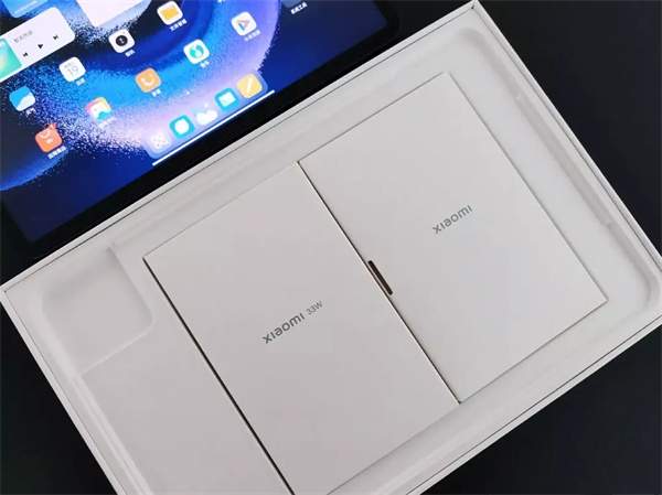打开包装盒,里面的平板电脑使用无纺布套保护,还印有黑色字体的“xiaomi”拼音,细节做的十分到位。