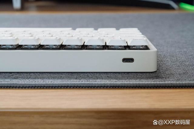 MG65 Pro支持三模连接:蓝牙 5.1+有线连接+2.4G连接,充电USB-C口设计在左上侧边处,键盘是没有独立的开关键。第一次使用的时候,需要进行初始激活:可以使用数据线将键盘和电脑连接,就自动激活了;或者可以长按FN+R组合键5秒,激活键盘进入2.4G无线模式。