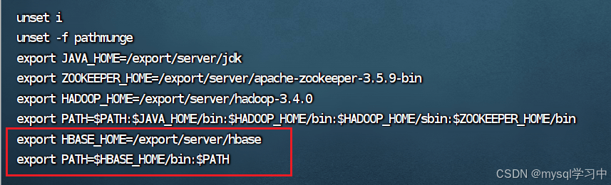 添加: export HBASE_DISABLE_HADOOP_CLASSPATH_LOOKUP='true' (任意一行,别带有#号)