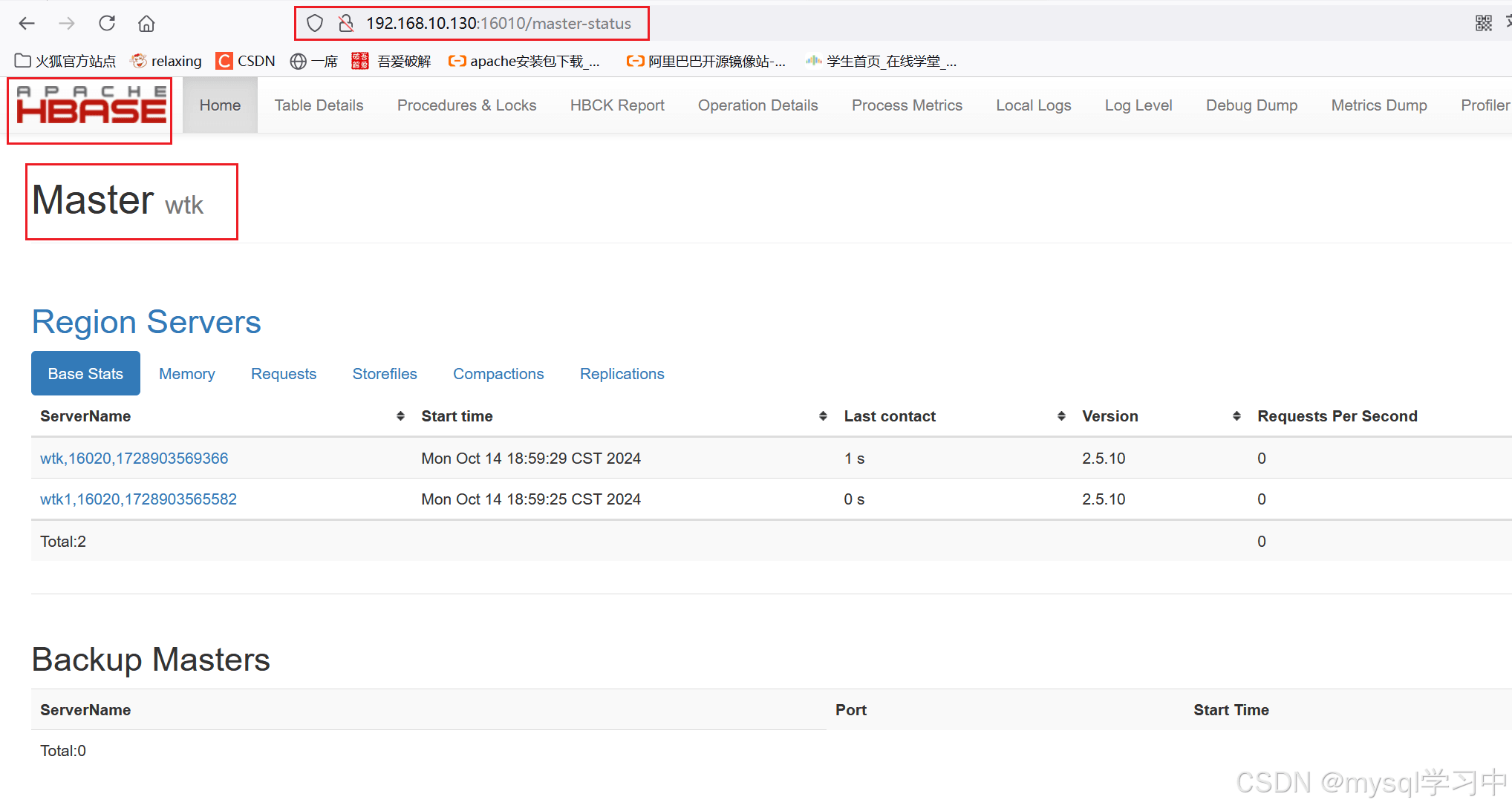12.验证启动: 主机ip:16010 我这里是192.168.10.130:16010