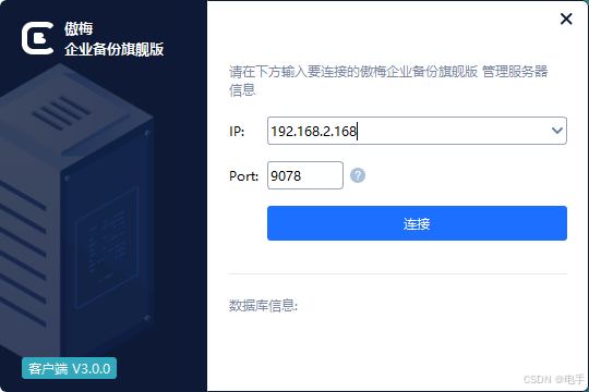 然后将此代理客户端安装到需要备份SQL数据库的计算机上,然后打开傲梅企业备份旗舰版客户端,在出现的客户端界面中输入您主机端的IP地址与端口号,点击“连接”即可。