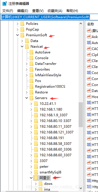打开对应的目录,寻找一下servers下要找的数据库,如我要找阿里云的密码