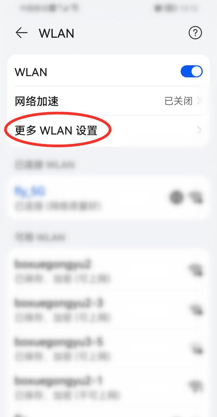进入WLAN设置,点击【更多WLAN设置】选项。
