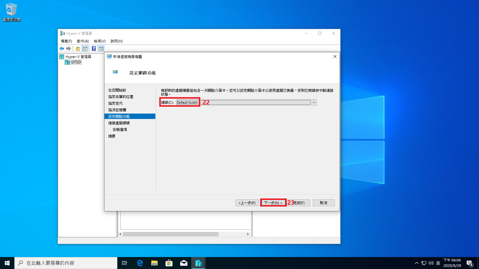 13. 设置网络连接:选择[Default Switch]后点击下一步