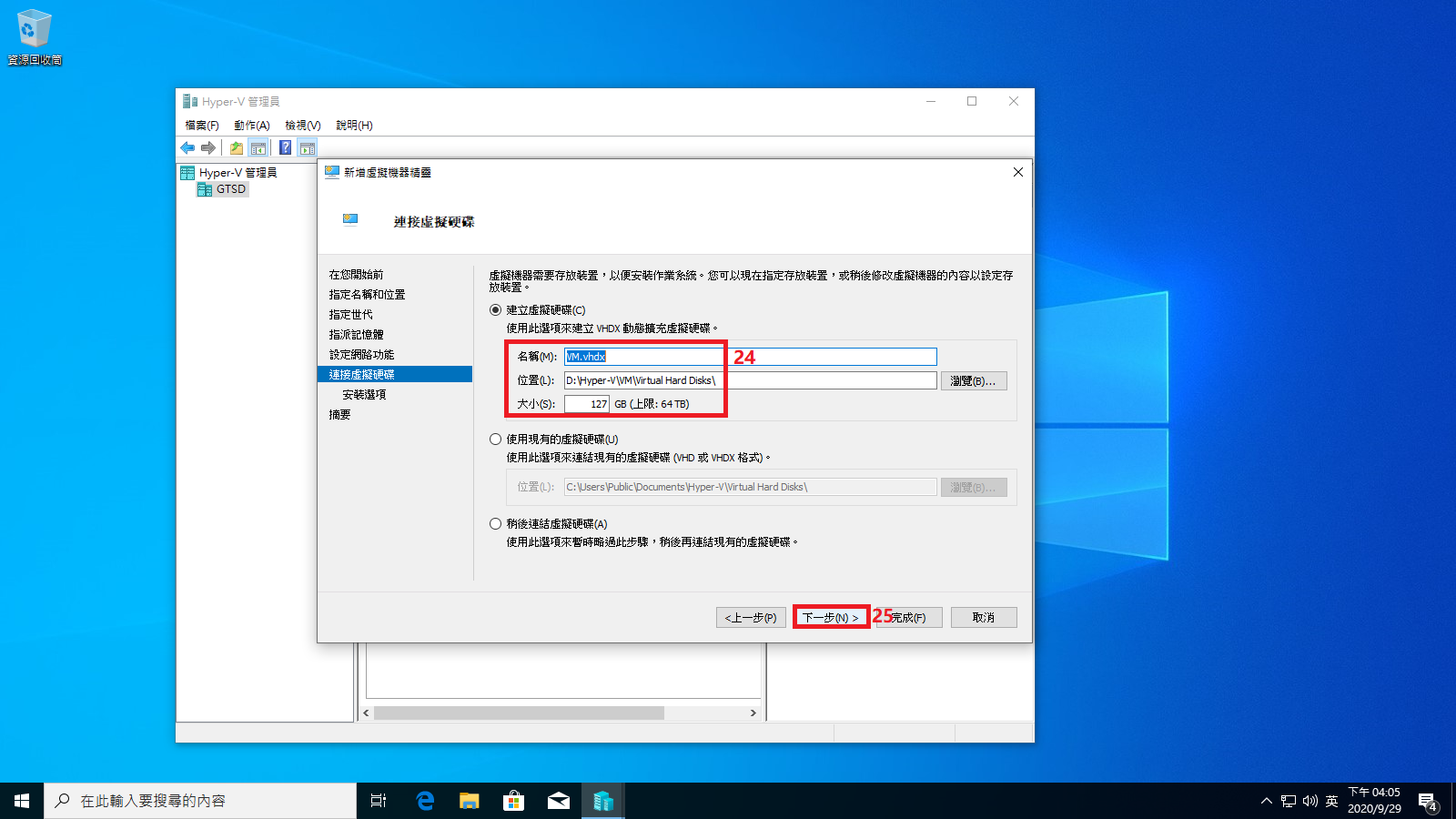 14. 设置虚拟硬盘的名称,位置,大小后点击下一步