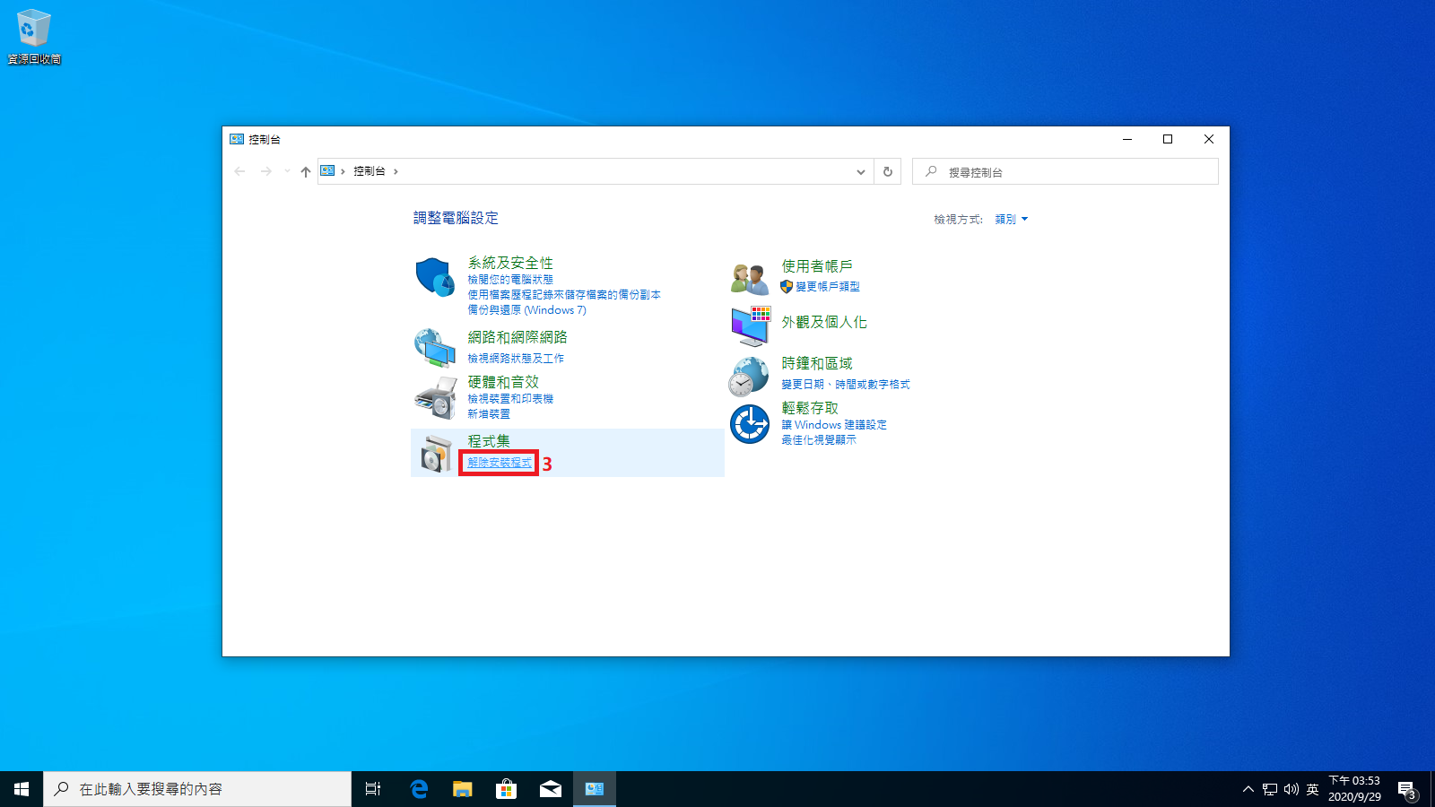 1. 在工作列上的搜索方块中,输入「控制台」,然后选取 [控制台]。