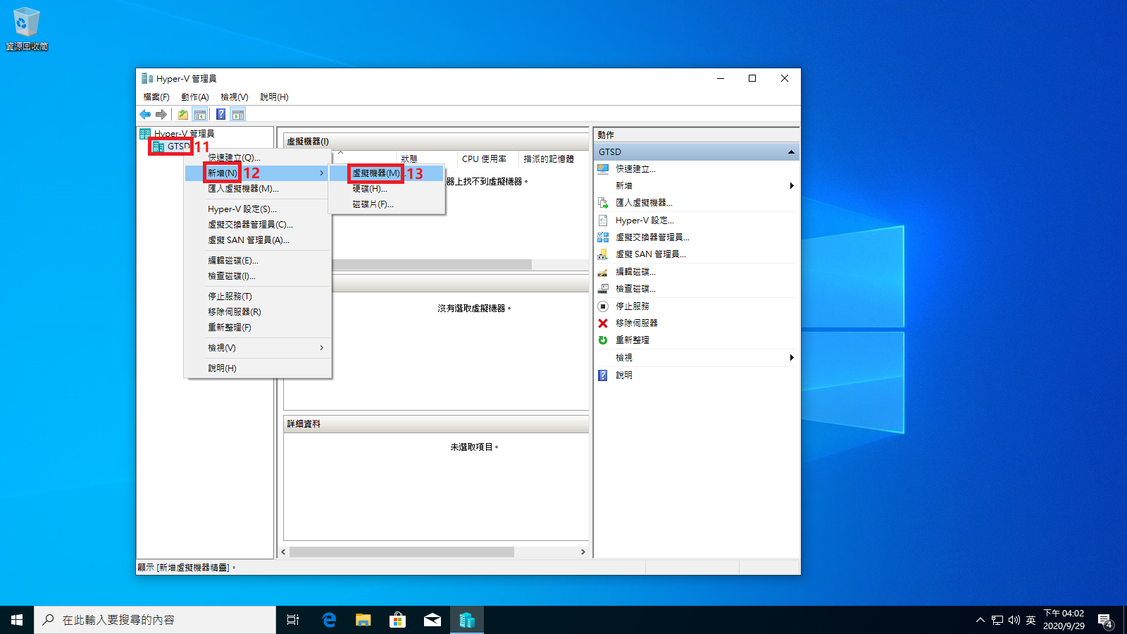 8. 鼠标右键点击[虚拟机],选择[新建],选择[虚拟机器]