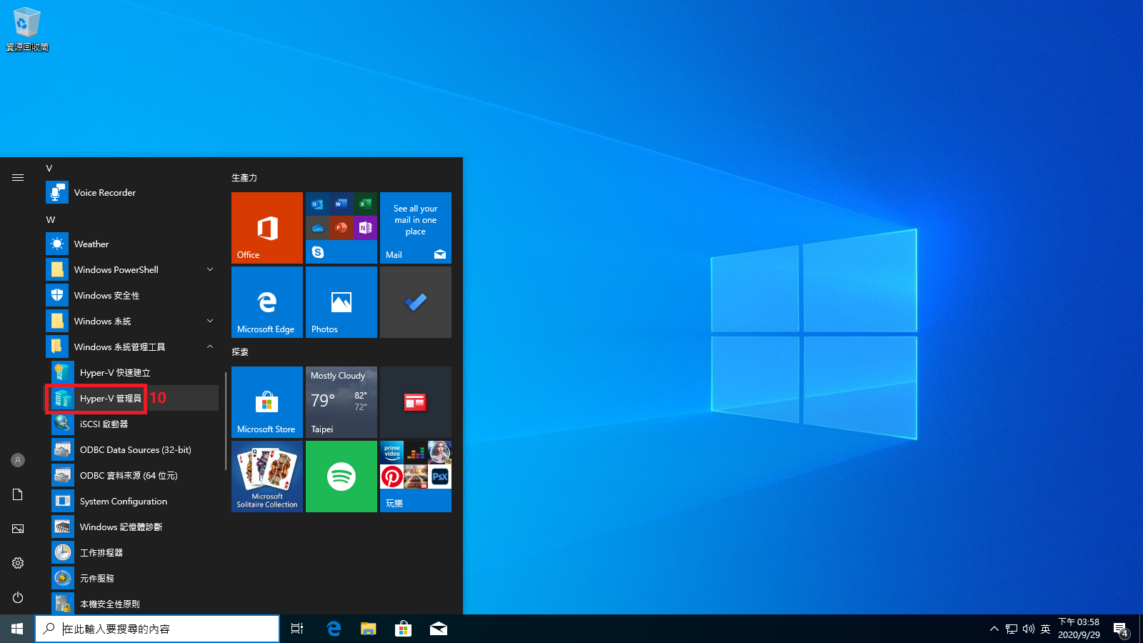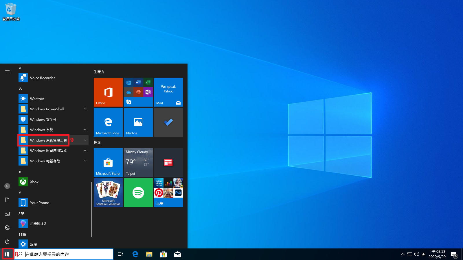 6. 重启进入系统后,点击[开始选单]后选择[Windows系统管理工具]