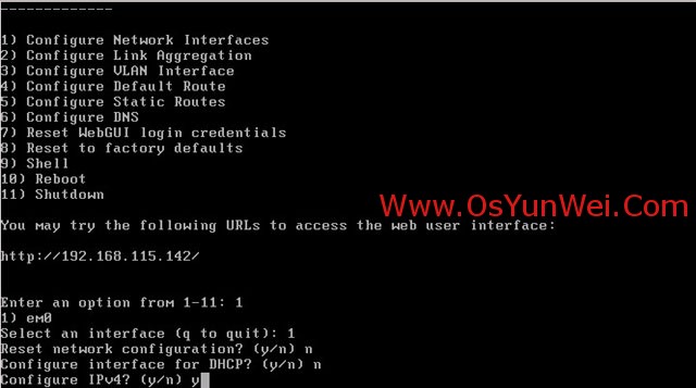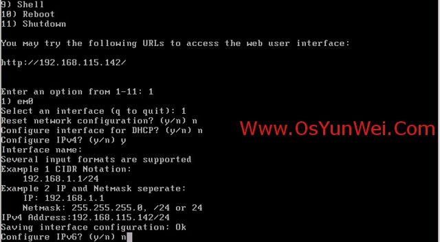 提示配置IPv4 输入y