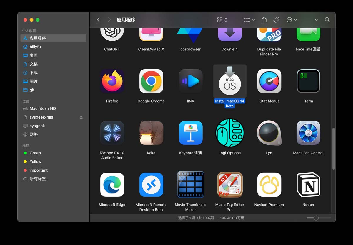 3、在提取 pkg 文件后,您将在「应用程序」文件夹中找到名为 Install macOS 14 beta.app 的 macOS Sonoma 安装包。接下来的步骤涉及从该安装包创建一个 ISO 文件。