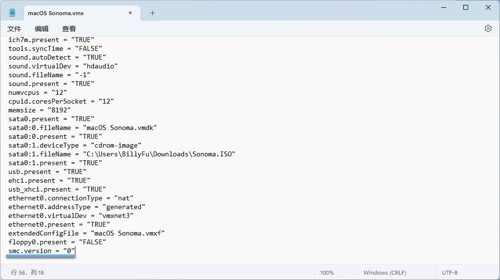1、找到「步骤 3」创建的虚拟机文件路径 – 使用 Notepad 打开 .vmx 文件。