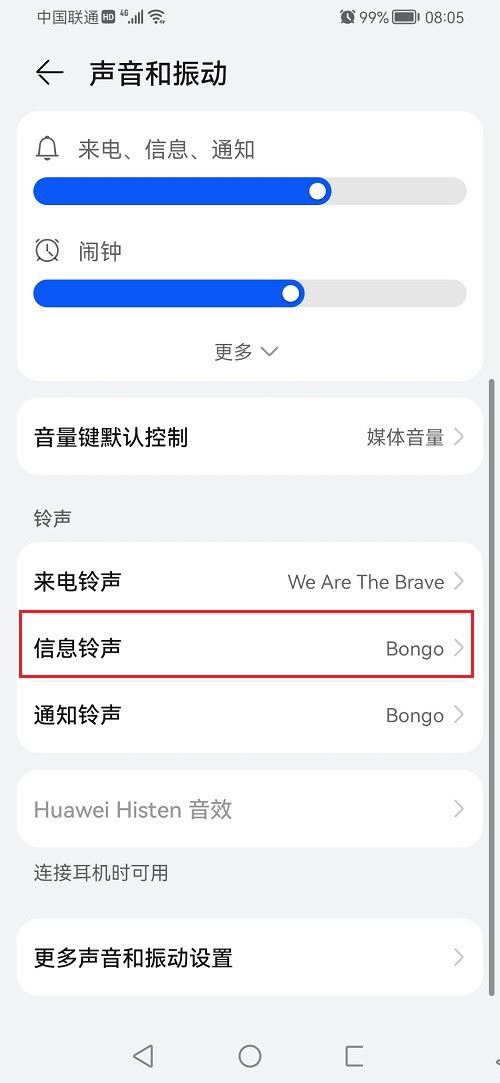 第五步选择之后,就成功设置鸿蒙系统短信提示音了,根据需要设置