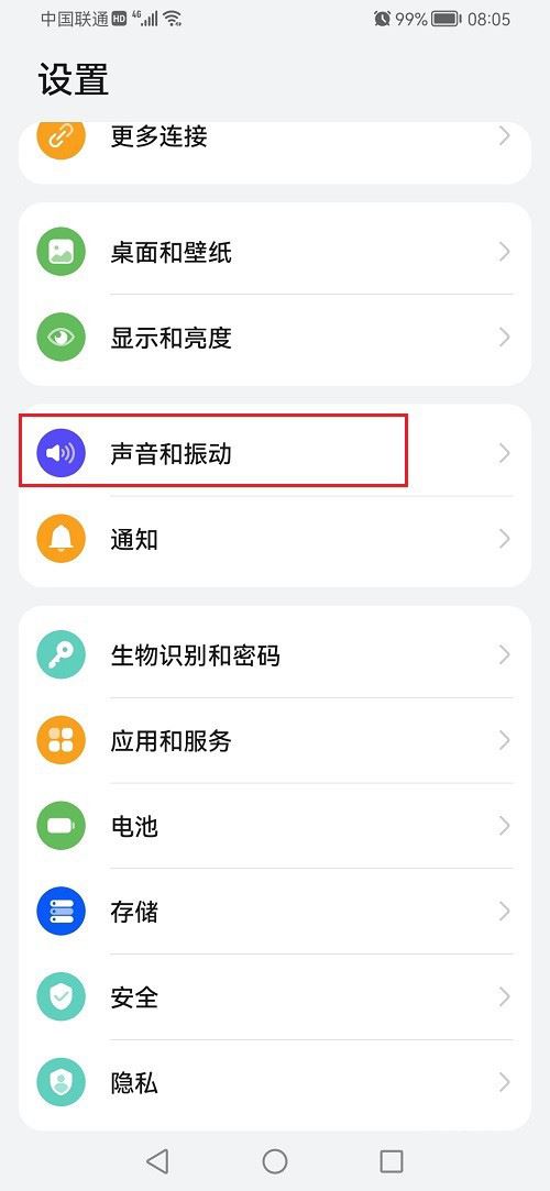 第二步进去鸿蒙系统设置之后,然后点击声音和振动