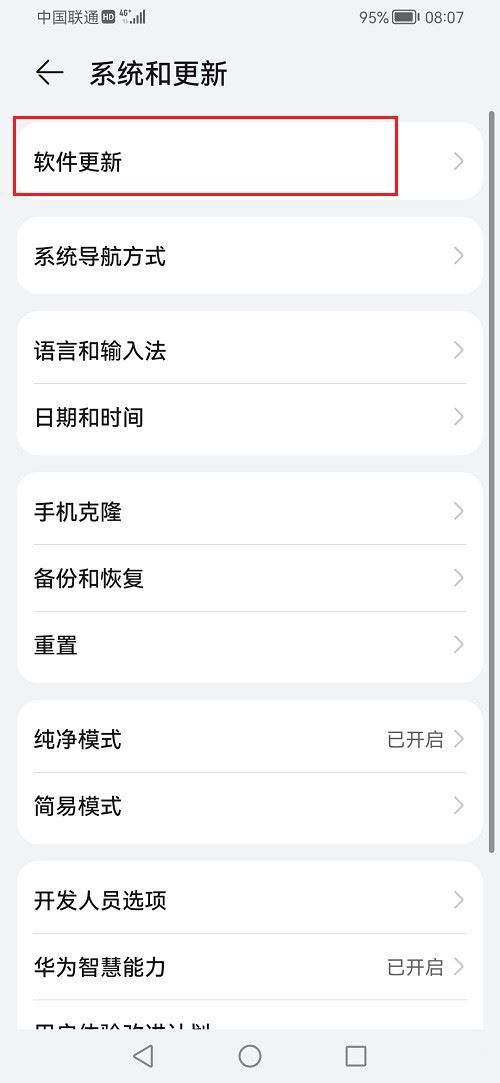 进去系统和更新之后,然后点击软件更新