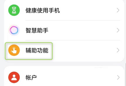 点击之后就会切换到系统设置界面,在该界面中往下滑动就能看到“辅助功能”,如下图所示