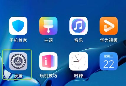 首先我们要将手机鸿蒙系统升级到最新的2.0.0版本,然后在手机桌面上找到“设置”图标;