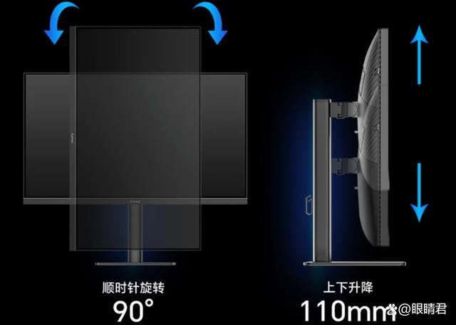 显示器支架符合人体工学设计,可以高低、俯仰、旋转多维度调节,支持VESA支架。