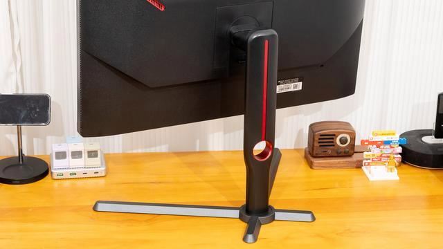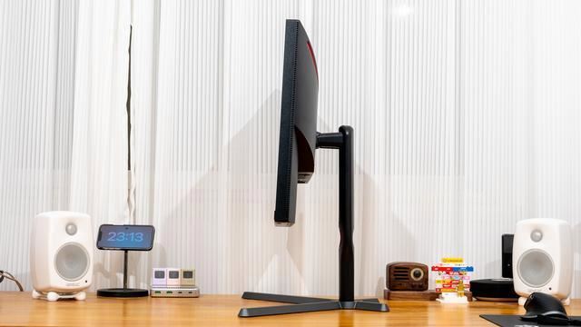 此外还支持130mm升降条件,而且相比传统显示器,它的支架高度还是比较高的,升至最高高度后,显示器底部距桌面间距达到了16.9mm,对于我这样的高个子用户非常友好。