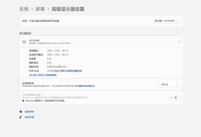 如果你是PC玩家在上手这样高刷电竞显示器的时候,需要自己手动在显示器设置屏幕--高级显示器设置中找到选择刷新率选择160Hz(DP线材连接),HDMI 线材连接最高可以实现144Hz。