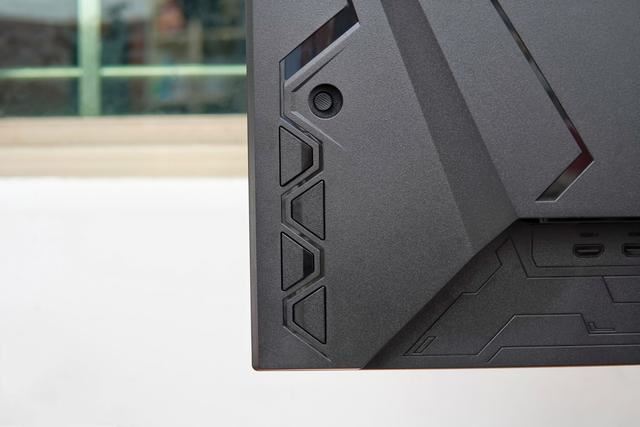 显示器背部比较显眼的就是右侧的按键区和OSD摇杆,位置在右手盲按触感较好的区域,又采用了浮凸设计,所以在进行显示器功能和参数设置时,很是方便。