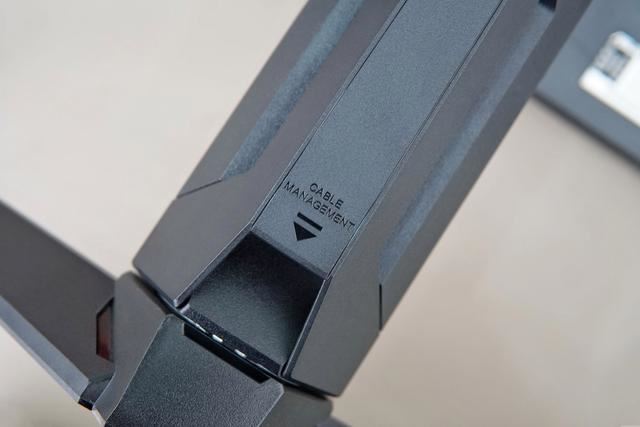 另一项美观设计,是立轴背部的线槽,线材从线槽过,就显得规整很多,对于桌面颜值提升效果明显。