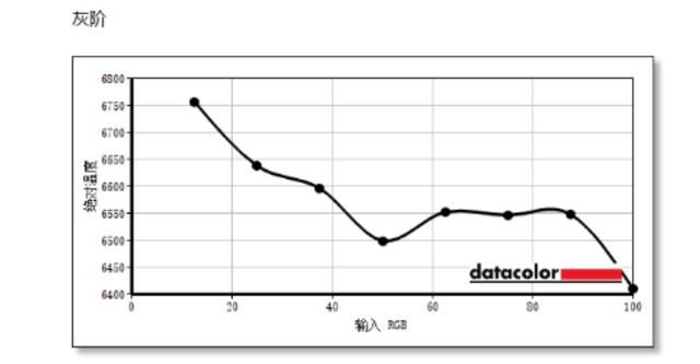 灰阶表现随着输入RGB的递增,而呈现从6750到6400左右的绝对温度变化。