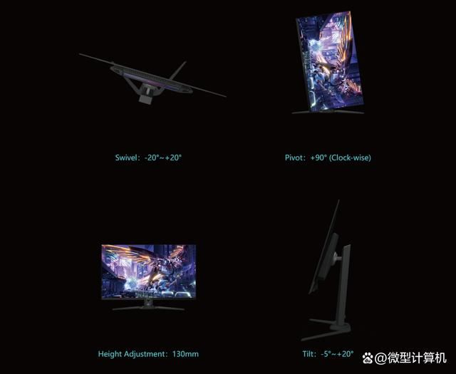 作为一款高端电竞显示器,人体工学支架是AORUS FO32U2P的标配。可不要小瞧人体工学支架的设计,出色的支架在上下、左右调节时的阻尼感更好。很多低端显示器在进行调节时,容易出现“头重脚轻”有晃动的情况。AORUS FO32U2P在支架的调节上阻尼感很丝滑,它不仅支持-5°~+20°俯仰角调节,还支持130mm升降、0°~90°垂直旋转以及20°左右旋转。特别是在左右旋转时,当旋转后需要保持居中时,会有一个比较明显的“卡点”,让用户通过触感就能知道旋转到了中心点,不得不说它设计得非常巧妙。另外,AORUS FO32U2P还配有100mm×100mm的VESA标准壁挂孔位,可以搭配第三方显示器支架使用。