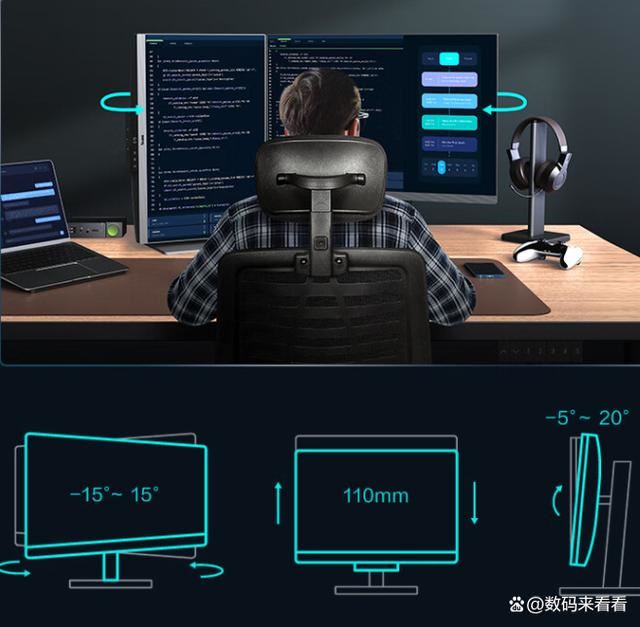 5、人体工学设计:明基RD280U显示器拥有多角度调节支架,包括旋转、升降、倾斜和旋转至竖屏模式,适应不同工作姿势,保护脊椎健康。